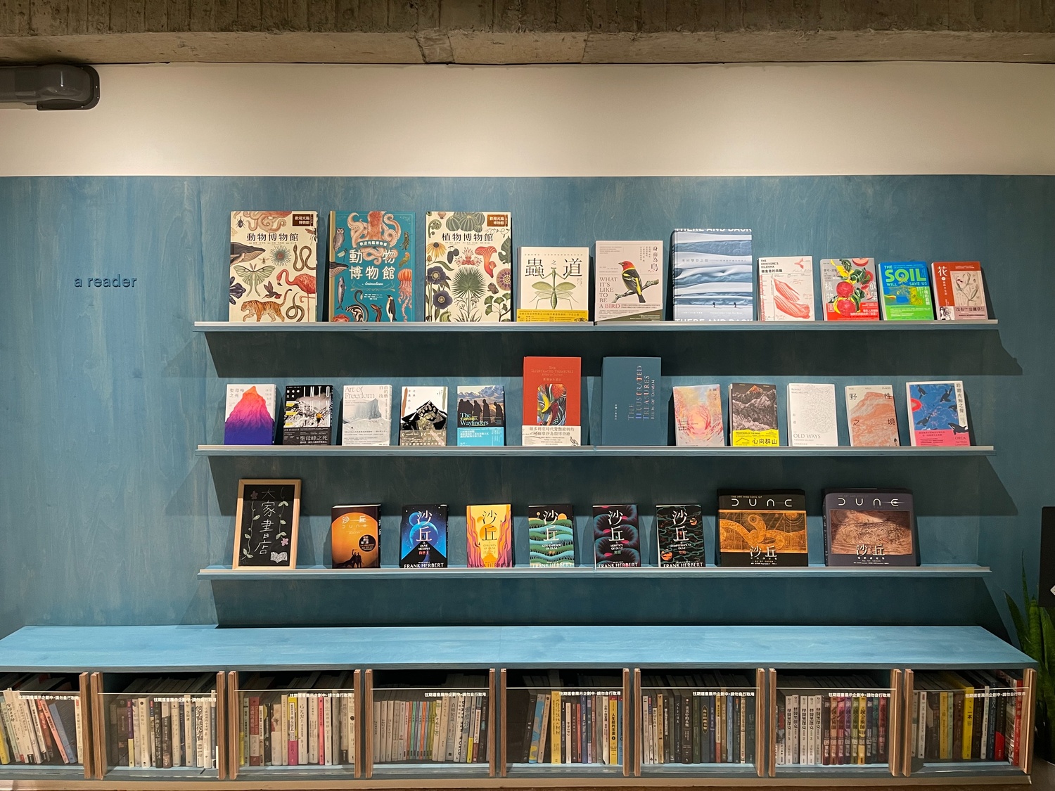 本期選書在牆面上鋪展開來,佈展當天自然引發讚歎。這些書的「好看」不僅止於外在設計,而是來自內容與編輯思考的整體完成度。出版社將對書的熱愛,以專業而誠實的方式呈現給讀者,這份自信也正是 a reader 希望分享的價值。